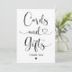 Direct your guests with style using this modern heart script "Cards and Gifts" sign. Flowing calligraphy with delicate heart flourishes creates an elegant focal point for your gift table, finished with a sweet "Thank You" below. The timeless black and white palette complements any wedding theme or color scheme. All text is fully customizable.