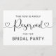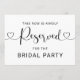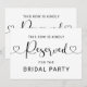 Reserve front-row seating for your closest loved ones with this modern heart script "Reserved for the Bridal Party" sign. The landscape orientation and flowing calligraphy with heart flourishes make a graceful statement hung on ceremony chairs or pew ends. Ideal for reserving rows for the bridal party, family, or VIP guests. All text is fully customizable.