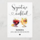 Highlight your signature sangria with this modern heart script cocktail sign featuring beautiful watercolor illustrations of red and white sangria glasses. Flowing calligraphy with delicate heart flourishes gives the design a romantic, polished feel perfect for your wedding bar or reception. A charming way to let guests know their drink options. All text is fully customizable.