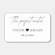 The design features the sentiment "The PERFECT MATCH" in a curated blend of elegant white script and classic serif typography. Your names, "TAYLOR & JORDAN," are printed vertically along the side in a crisp, clean sans-serif font. Whether used for a sparkler send-off, a cigar bar, or as a thoughtful addition to a welcome bag, these personalized matches are a timeless and functional keepsake for your guests.