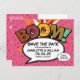 Featuring love hearts confetti, a fun, cool and trendy comic book inspired save the date card that puts the wham, zap, pow into your wedding date announcement. The reverse features your additional event information. Designed by Thisisnotme©