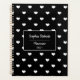 Stay organized with this cute planner. Keep track of your appointments, important events and special occasions. The design features a modern print of white vector hearts on a black solid background. You can personalize the planner with your own name and text as you wish.