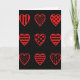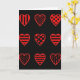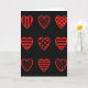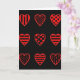 This card shows a deep black background with a neat grid of nine red hearts across the front. Each heart has a thin white dashed outline, like stitching, that makes the shapes feel warm and cared for. Some hearts have black stripes running across them, while others are filled with polka dots that switch between red-on-black and black-on-red. The hearts look slightly different from one another, which makes the whole layout feel lively without being busy. There isn’t any text on the front, so the simple design carries the message on its own. It feels meaningful to give because it’s all about love in many forms—romance, close friendship, and steady support—shown through repeating hearts that still feel unique ❤️. It’s a sweet way to say “I’m thinking of you” without needing extra words 🥰, and it’s perfect for sharing Valentine’s Day sentiments.