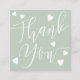 Modern hearts thank you script order sage green square business card