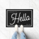 Modern Hello Black White Script Family Name Doormat