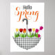 Welcome the spring season into your home with this springtime design. This design is with text HELLO SPRING set using popular typography with colorful Tulip flowers in an umbrella garden. Enjoy!