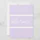 A purple lavender hand-lettered hello world photo birth announcement postcard to welcome your new arrival. Send out this card to friends and family so they can see your new bundle of joy.