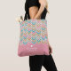 A colorful pattern with shades of pink, gold, and blue. Add your name to personalize this tote bag. A colorful design with a cute heart to make the monogram special.
