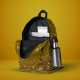 A harmonious blend of circles and hexagons forming a captivating sketch of a bear and flowers. Inspired by Hindu and Buddhist mandala styles, this design exudes modern simplicity with a deliberate golden hue, symbolizing harmony in nature. Lightweight and durable, this custom-printed backpack features adjustable padded shoulder straps, multiple compartments including a laptop pouch, mesh side pockets, and an ID label. Ideal for travel, school, or the gym, carry your essentials with flair and functionality.