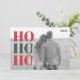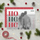 Spread festive cheer with this modern holiday photo card featuring bold “HO HO HO” typography in alternating red and green letters. The minimalist design highlights your favorite photo, complemented by a red polka dot back pattern for a playful seasonal touch. The year “2025” adds a personalized, timeless detail, while customizable text on the side allows you to include your family names or a special message. Perfect for sharing joyful holiday wishes in a sleek, contemporary style.