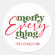 Modern Holiday Minimalist Merry Everything Classic Round Sticker