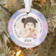Modern Holographic Baby Girl First Christmas Photo Ornament