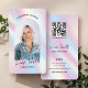 Trendy holographic design photo business cards with modern script font and scannable QR code. This feminine business card with photo features elegant purple and blue gradient background, space for your name or logo, contact details QR code and large profile photo on the front. Perfect for aestheticians, nail artists, hair salons, photographers, event planners and more!