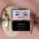 This modern and sophisticated business card design features a glamorous , minimalistic illustration of a woman's eyelashes over a stunning holographic background with bold name or business name and title.