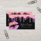 This gorgeous makeup artist business card design features faux holographic glitter lips & dripping glitter, black background and elegant calligraphy font.