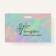 Professional abstract minimalist holographic illustration in rainbow pastel shades; your name and text written with trendy typography calligraphy script.