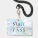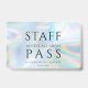 Custom Holographic Staff All Access Pass Event Badge that you can easily customize. Perfect for any event and corporate events. Completely repurpose this design template for other special occasions in your life by clicking the "Edit using Design Tool" nested under the "Personalize" button to change the background color, fonts, and layout