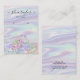 Modern stylish calligraphy earring display holder with simulated Unicorn holographic foil effect, and two printed hole "markers" for your hand made jewelry (please note that these are not real holes).