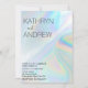 Plain white envelopes are included with paper invitations and will come to fit the invitation size you select. If you don’t need the envelopes, you may choose to not receive them by selecting the dropdown below "Envelopes" and choosing "None." If you’d like to have a design on your envelopes, you can browse all of these available envelopes to find the design that complements your Modern Holographic Wedding Invitation.