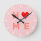 Modern Home Heart on Pink Round Clock