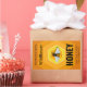 Honey bee icon at the center of a hexagonal honeycomb pattern in golden honey colors to create a set of vertical honey jar labels. Featuring modern style typography and customized text for the beekeeper name, contact information and type of honey - using one or 2 lines of text for Orange Blossom and other sources of nectar..