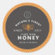 Boost your honey jar packaging with these modern round sticker labels featuring a charming bee motif and clean text on a dark brown background. The bee comb accents around the label add a touch of sophistication to your honey presentation. With an editable template, you can easily customize all values, colors, and text, including uploading your custom logo. These labels offer a versatile canvas for small business owners to brand their products effectively. Ideal for small and medium sized honey jars, these stickers blend vintage charm with modern elegance, making them perfect for farmers' markets, supermarket shelves, and specialty stores. Stand out from the competition and create a cohesive brand presentation with these highly customizable round sticker labels.