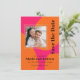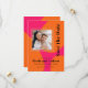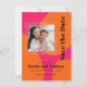 This bold and beautiful wedding save the date card is popping with modern retro style! Plan your fabulous wedding day celebration with this vibrant color scheme of hot pink and orange. This colorful card has a designer look with bright orange rounded shapes over a hot pink background. The text template in contemporary crisp type face with a retro vibe and carries out the theme beautifully. Upload your square photo in place of the sample photo shown for a personalized save the date card you will be proud to share with friends and family.