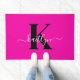 Modern Hot Pink Black Script Monogram Doormat