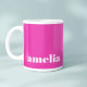 Cute hot pink coffee mug that features your monogram name or initials in a popular and trendy bold white font. You can adjust the size of the font in the design tool for shorter or longer names.