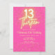 Modern Hot Pink Neon Glow Gold Glitter 13 Birthday Invitation