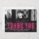 Modern graduation thank you card displaying the graduate's horizontal photo with "Thank You" in hot pink neon lettering. Personalize the photo graduation thank you card by adding the graduate's name, school name, and graduation year. The graduation photo thank you card reverses to display your typed thank you message or leave blank to handwrite your own. The solid hot pink background can be changed to a color of your choice.