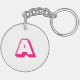 Modern hot pink fuchsia and white custom monogram initial letter Keychain.