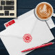 Modern Houndstooth Cherry Red & White Monogram Classic Round Sticker