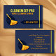 Modern Minimal House Cleaning Business card in blue, yellow and orange theme, with all the essential information required for a Housekeeping service. This Card feature a logo of house cleaner broom. Enhance you house cleaner service business with this modern yet professional business card.