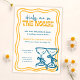 Celebrate your new home in style with this playful and modern housewarming party invitation! Featuring bold typography with the phrase “Drinks Are on the House,” a wavy yellow border, and minimalist illustrations of clinking cocktail glasses, this invitation is perfect for casual and festive get-togethers. Easily customizable for your party details, this design suits couples, roommates, or solo movers ready to toast their new chapter. Great for new homeowners in summer or fall!
