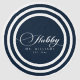 Choose these modern and trendy personalized Wifey and Hubby beach towels as a gift for newlyweds, honeymoon vacations, or wedding anniversaries. They feature the word "Wifey" or "Hubby" in a modern handwritten calligraphy script, Mrs's Mr's name, and the year established. The contemporary, minimalist, and preppy design, with nautical ocean vibes, features white circular stripes on a deep navy background. Don't forget the towel for your Hubby. Buy his and hers beach towel set now!