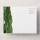 The left-hand edge of this elegant modern all-in-one wedding invitation and RSVP features a hunter green watercolor agate border trimmed with faux gold glitter. The customizable text combines charcoal gray handwriting, copperplate and italic fonts on a white background. The return address appears on the outside flap and the reverse side of the detachable RSVP card.