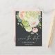 Beautiful bouquet of watercolor flowers - white and green hydrangeas, pink and cream roses, daisies, small stems and leaves - create these wedding save the date postcards with your details in chic lettering lettering on a dark background on the front and pale pink on the back. MATCHING items in our store.