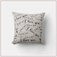 Charming throw pillow with I LOVE YOU randomly placed on a background of old, worn papyrus. Light bluish-purple with black text lettering. Perfect gift or accent piece for a sprinkle of love and style.