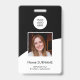 Personalized employee id card - identification modern minimalist elegant black and white badge with your custom company logo, photo, name, title, QR code or barcode, and other details - if needed. +++++++++++++ Easy to personalize with your info on both sides! +++++++++++++++ Suitable for corporate employees, managers, executives, accountants, business office staff, warehouses, retail and logistic companies. +++++++++ Please note that the background color, fonts, and sizes of text can be changed. You can upload a scanning QR code or bar code or add any other text on the backside.