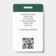 Create a professional appearance with a branded staff ID badge. This editable template can be personalized with your profile photo, name, job title, employee number, and company logo. Return details are on the back, along with additional information, and a QR code. Perfect for creating a cohesive branding experience, or simply to verify the identity of the wearer and display their qualifications. This identification badge is ideal for customer-facing roles and corporate settings — from business consultants and retail stores to medical professionals, hospital staff, office workers, conference teams, corporate events and more. Custom badges build brand identity and enhance security. Printed colors: very dark green, gray and white. Vertical format.