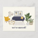 Modern We've Moved New Home Moving Announcement Postcard with a Fun Modern Living Room Illustration