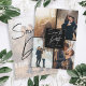 Take your 5 best images from your engagement photo session with 4 for the front and one for the back. It features a hand lettering design that says Save the Date.