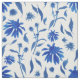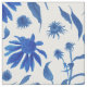 hand-drawn ink painting of cone flowers, buds and leaves on white background, floral pattern in blue tones