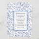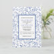Modern indigo blue leaves pattern wedding invitation