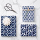 This is a set of three wrapping sheets in navy indigo and white patterns. This pattern is done in the Asian, or Japanese style of Shibori printing, which looks like indigo, or navy, watercolor or tie dye. Enjoy!