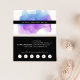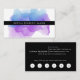 Chic watercolor business cards feature your name or company name layered on a blooming inkblot illustration in bright, colorful shades of indigo blue and violet purple. Add your full contact information to the back in white on crisp black. Includes your custom loyalty offer (shown with "enjoy 20% off any service after five visits"), and six punchouts.