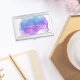 Elegant and colorful business card holder features your name and/or business name in white, overlaid on a vibrant watercolor inkblot in ethereal violet purple and indigo blue. Matching business cards and accessories also available.