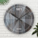 Wall clock featuring an industrial style design resembling a cutting board. Great for a kitchen or as a gift for a chef.
