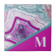 Trendy Bright Turquoise Fuchsia Stone Monogrammed ceramic tile. Crystals and geodes continue to be a favorite trend! This print features and up close image of a vibrant turquoise and purple (magenta) geode stone, complete with little crystals. Add your initial to make it your own.